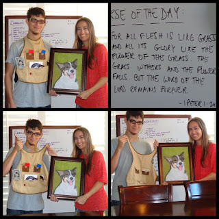 On Monday, I just finished writing the Verse of the Day (1 Peter 1:24-25) on our family white board and minutes later my faithful friend, Baby, would suddenly die. Life is quick and very precious. Emilio, Emmanuel and I are celebrating her life. And Manny put on her "fishing" jacket and will be helping me fish for men in her stead.